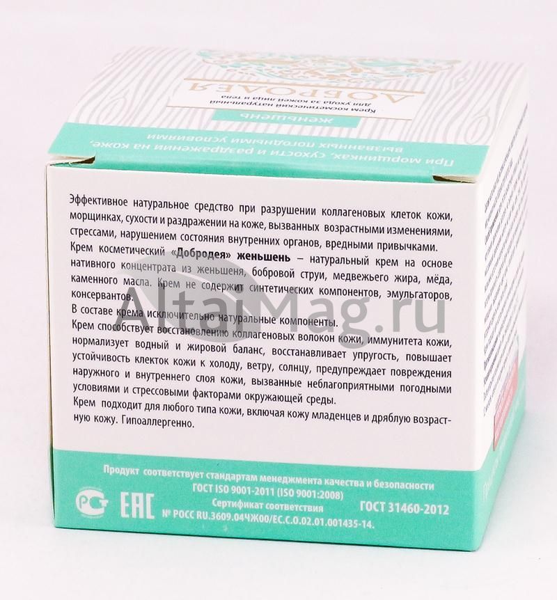 - Купите Крем Женьшень Добродея, 30 г в Тюмени по доступной цене 354 ₽ с доставкой на дом или заберите Ваш заказ в Тюмени из ближайшего пункта выдачи, сделав заказ на AltaiMag.ru.