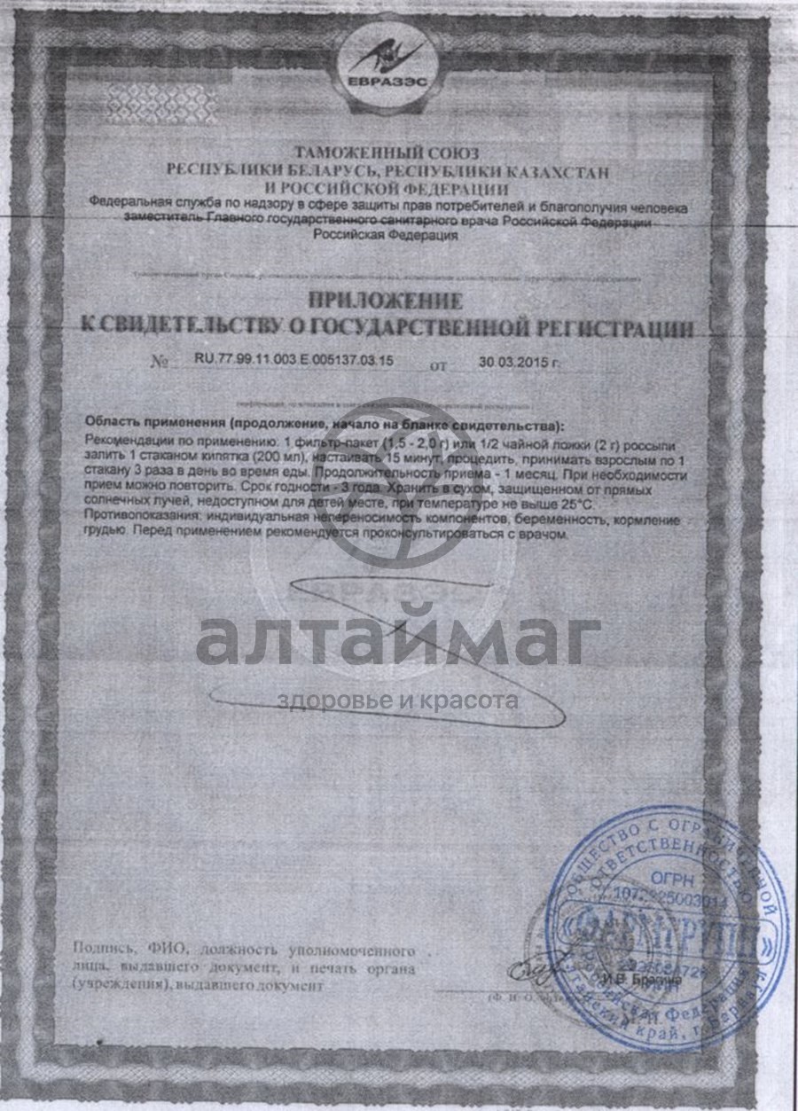 ½ чайной ложки (2 г) залить 1 стаканом кипятка (200 мл), настоять 15 минут, процедить, взрослым принимать по 1 стакану 3 раза в день во время еды.