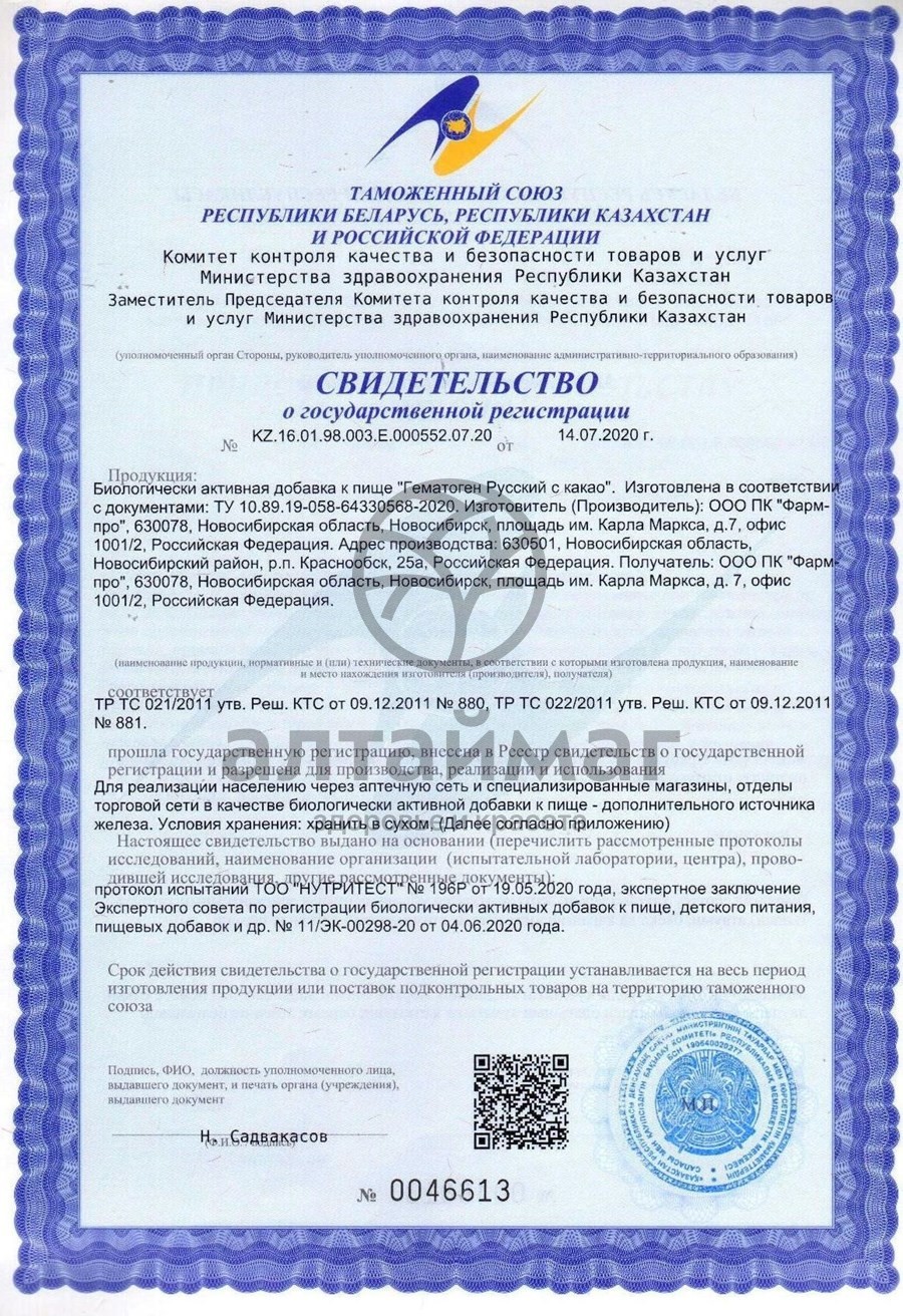 - Купите Гематоген с какао Русский 40г в Тюмени по доступной цене 45 ₽ с доставкой на дом или заберите Ваш заказ в Тюмени из ближайшего пункта выдачи, сделав заказ на AltaiMag.ru.
