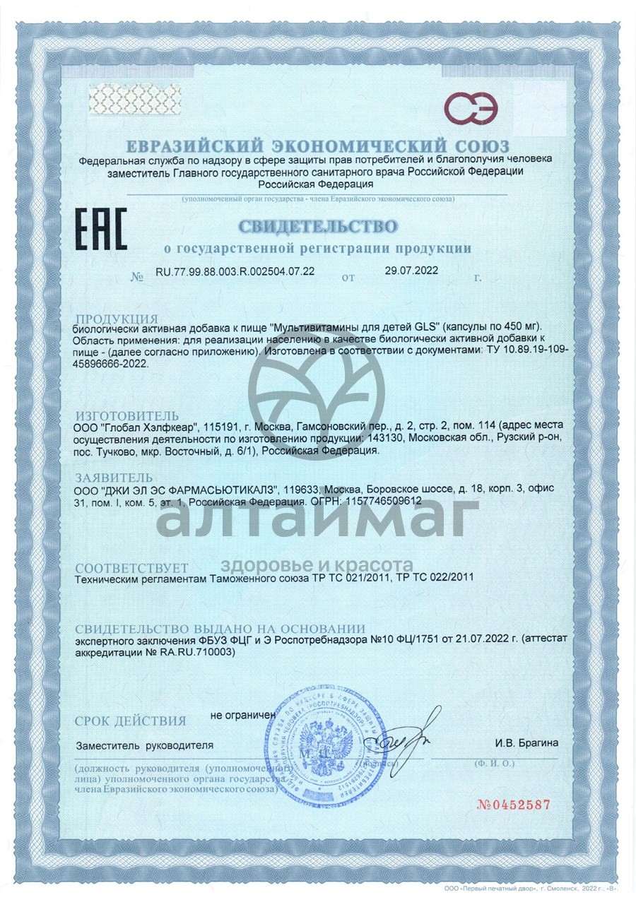 - Купите Мультивитамины для детей GLS 60 капсул в Тюмени по доступной цене 722 ₽ с доставкой на дом или заберите Ваш заказ в Тюмени из ближайшего пункта выдачи, сделав заказ на AltaiMag.ru.