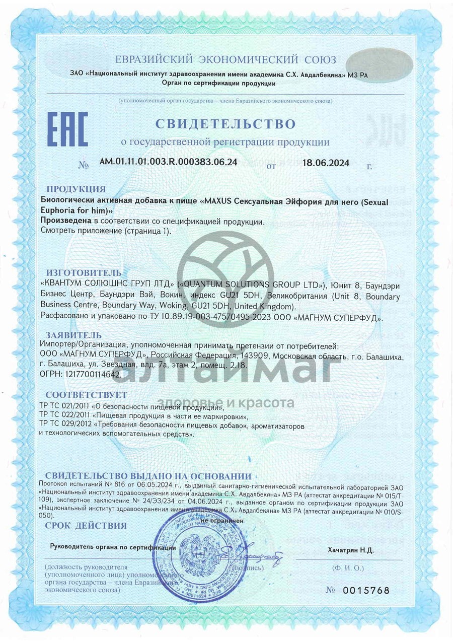 - Купите Maxus Sexual Euphoria для него 60 капсул в Тюмени по доступной цене 949 ₽ с доставкой на дом или заберите Ваш заказ в Тюмени из ближайшего пункта выдачи, сделав заказ на AltaiMag.ru.