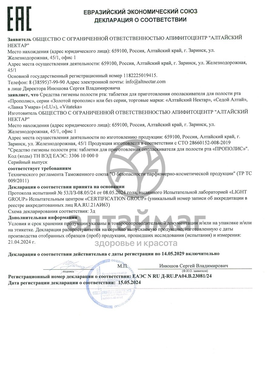 Особой ценностью обладает прополис, полученный на Алтае: благополучные экологические условия региона и большое количество произрастающих здесь лекарственных растений обеспечивают его уникальный состав и высокую эффективность. Именно алтайский прополис лег в основу прополис-спрея ТМ «Алтайский нектар».