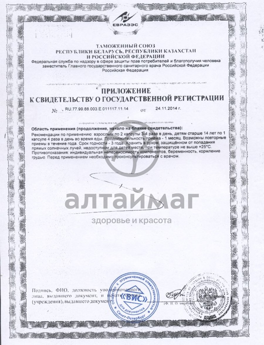 Взрослым по 2 капсулы 3-4 раза в день, детям старше 14 лет по 1 капсуле 4 раза в день во время еды. Продолжительность приема: 1 месяц. Возможны повторные приемы в течение года.Противопоказания