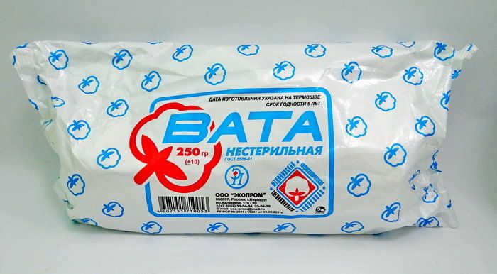 Вата гигиеническая нестерильная.